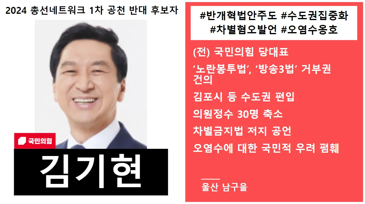 선정기준 | - 개혁후퇴와 저지, 반개혁적인 입법 정책을 추진해온 후보자
