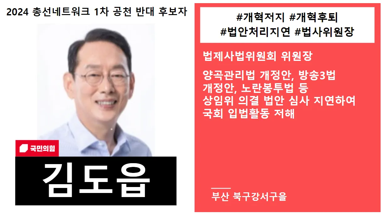 선정기준 | - 개혁후퇴와 저지, 반개혁적인 입법 정책을 추진해온 후보자
