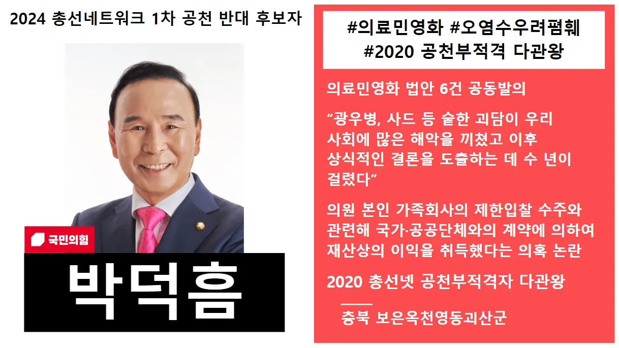 - 국회의원으로서 자질이 부족하거나 기타 이유로 총선넷에 공천부적격자로 제안·선정된 후보자 |