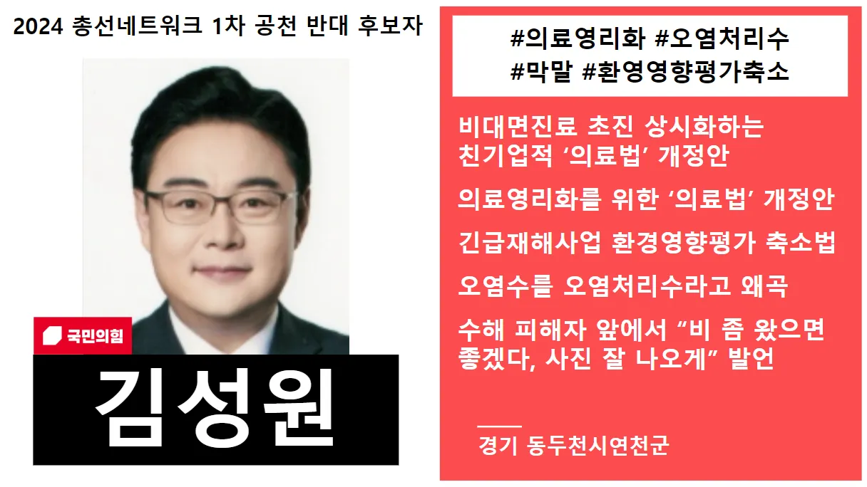 선정기준 | - 보건·의료·복지·교통 등 공공정책을 후퇴시키고 민영화에 앞장 선 후보자