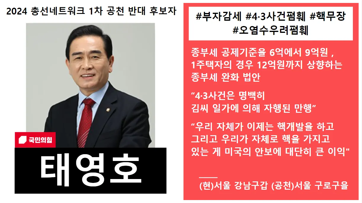 (33) 태영호 (국민의힘, (현)서울 강남구갑, (공천)서울 구로구을 )