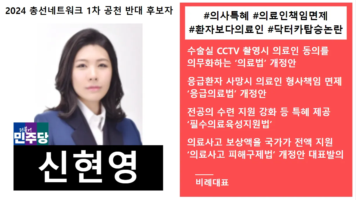 (2) 2022년 10월 30일 이태원 참사 당시 출동하던 명지병원 재난의료지원팀(DMAT) 닥터카를 타고 남편과 동행해 현장에 합류, 닥터카의 현장 도착을 20분가량 지연시켜 국회 윤리특위에 징계안이 제출됨(연합뉴스, 2022.12.22) |