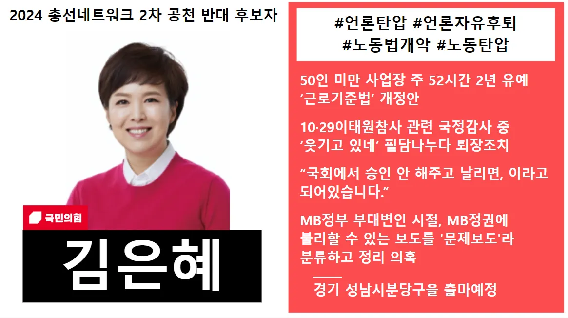 노동혐오를 부추기고 노동법 개악·노동탄압에 앞장선 후보자 |