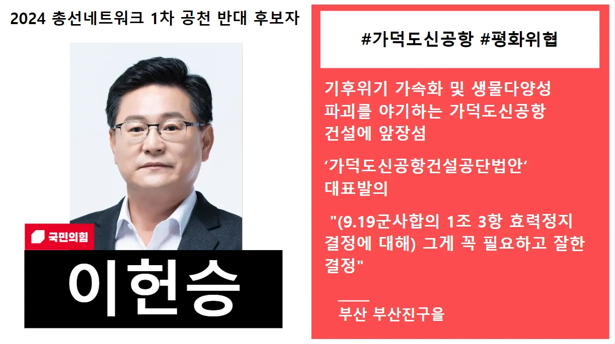선정기준 | - 신공항 건설·찬핵 등 기후위기를 심화시키고 국토 난개발에 앞장선 후보자